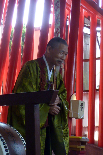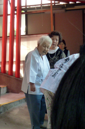 そして翌日も快晴。11時から始まる月並祭に、信者の方が続々と集まってきます。その中に、田中喜子さんを発見します!