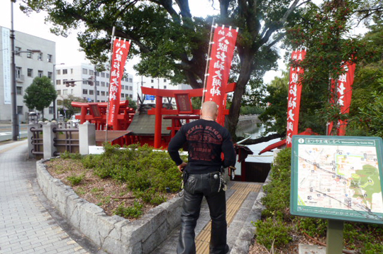 もちろん今回の旅もバイクで移動します。秋晴れの快晴の中、妻の縁の地を訪ねながら松山を目指します。そして松山に到着したのはまたしても夜。まずはお袖さんのところへご挨拶。5月同様、八股榎お袖大明神の小さな空間は、街の喧騒の中、心休まる温かい空気を感じます。
