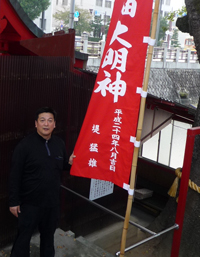 工事は平成24年夏に完了しました。そして寄付のお礼にと、田中喜子さんが私の名前の入った幟を作ってお社周辺に立てたいと言っていただきました。なんだか恥ずかしくもあり、とてもうれしく思います。ありがとうございます。